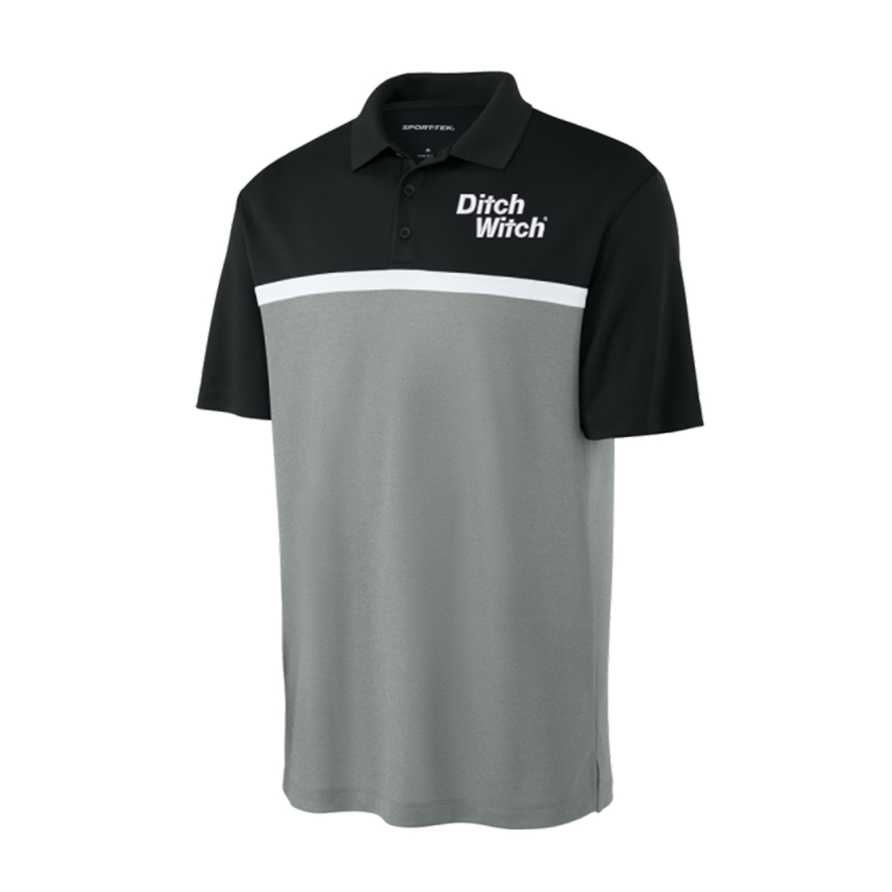This Ditch Witch Colorblock Polo delivers a sharp, modern look with reliable performance comfort. The black upper, white accent stripe, and grey lower panel create a bold contrast, while the Ditch Witch wordmark stands out on the chest. Made from moisture‑wicking, snag‑resistant fabric, this polo is a durable everyday option for the shop, office, or events.
